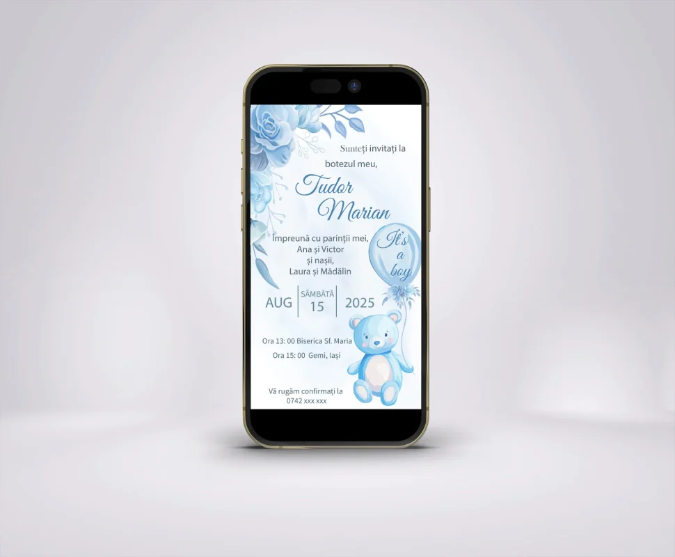 „Invitație digitală botez C6” a fost adăugat în coș. Vezi coșul